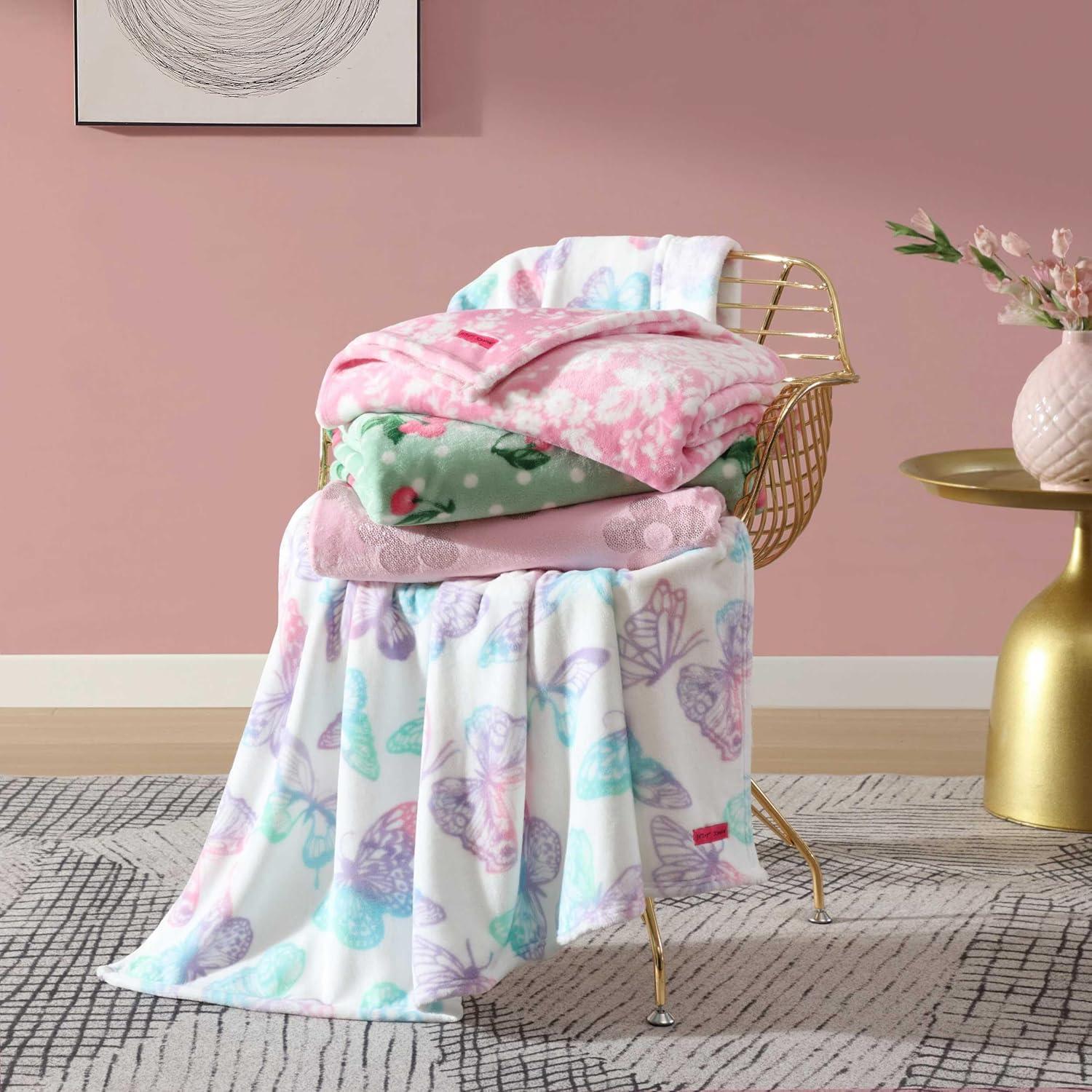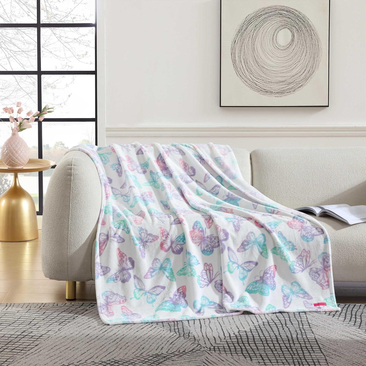 Betsey Johnson – Blanket, Buttery-Soft Throw Blanket for Couch or Bed, Boldly Plush & Oversized Bedding (Retro Daisy Pink, 50″ x 70″)(Butterfly Rainbow Purple)