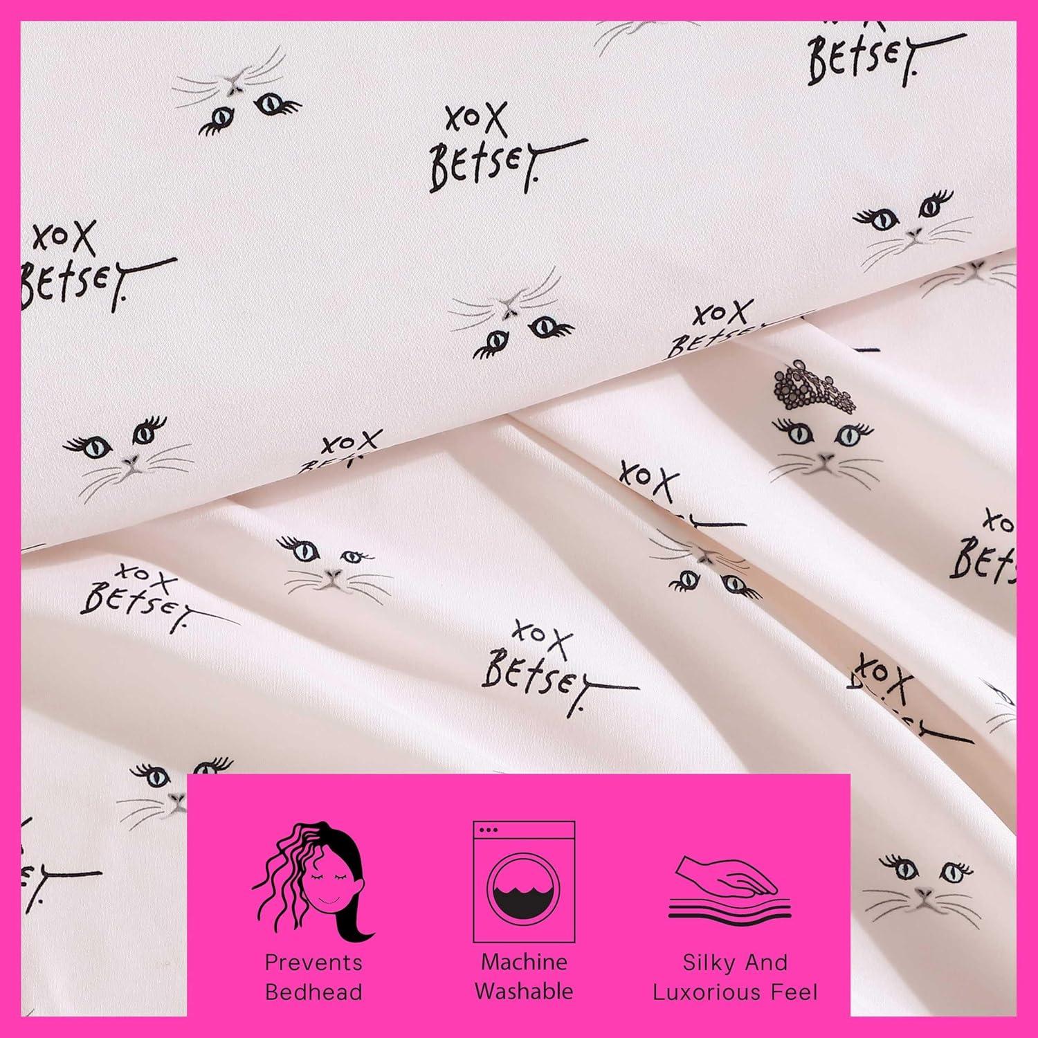 Add signature Betsey flair to your bedroom with the new bonus sheet set- including extra pillowcase(s). This set was made for bold dreamers who love standout details. Crafted from soft brushed microfiber, it offers a smooth, lightweight feel for everyday comfort. The perfect mix of charm, edge, and personality. Includes one flat sheet, one fitted sheet, and four pillowcases (two for twin size). Ensemble is available in several stylish designs and is machine washable for easy care.
